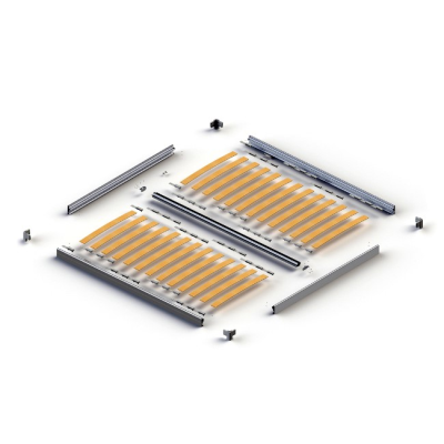 • Four aluminium profiles are offered for cutting to size, a kit of standard wooden slats and slat holders.